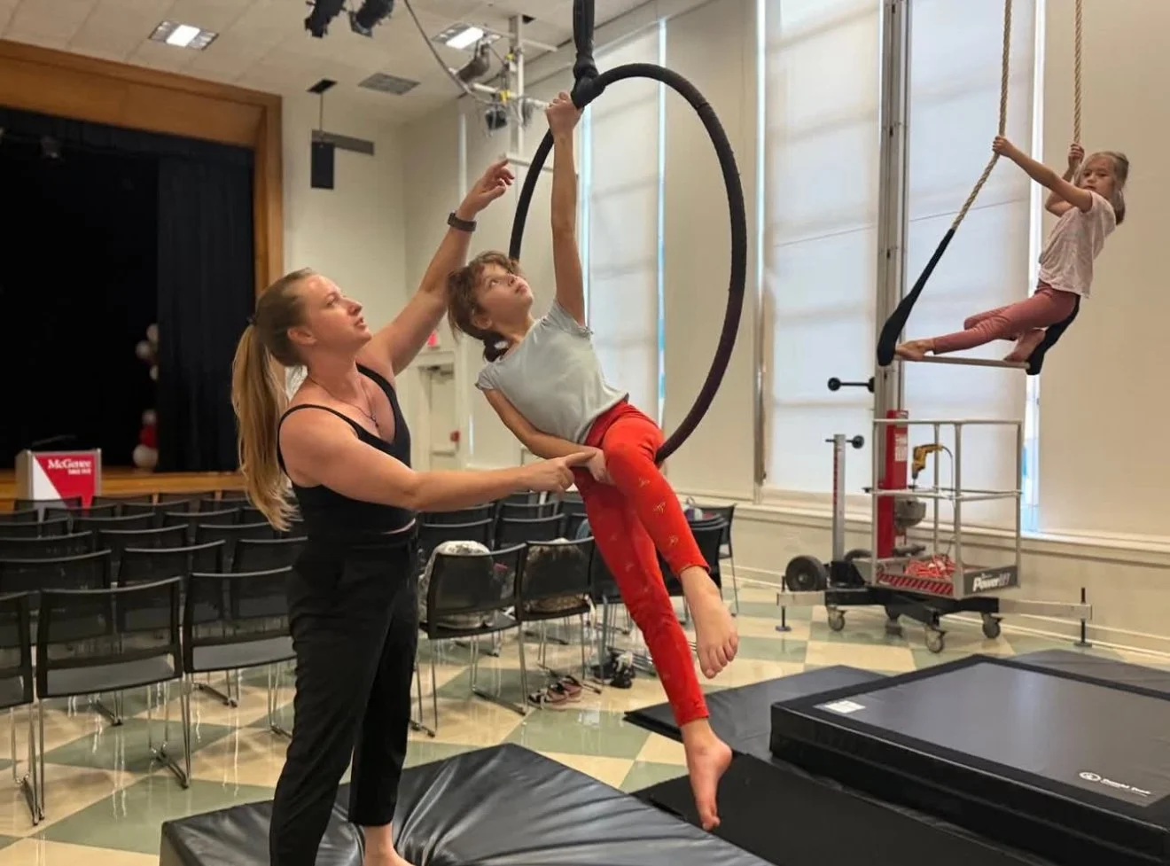 Liza offers youth and adult beginner through professional level instruction on static and single point trapeze, silks, rope, sling, and lyra. Her students also love her functional flexibility and handbalancing technique classes. She is a wizard at technical tune-ups and trouble shooting your "problem" skills, aerial theory for skill sequencing, and act creation. Liza has been a professional aerialist and educator for 20 years, and is also a registered Yoga teacher and an NASM Certified Personal Trainer specializing in Corrective Exercise. Liza coaches in person and online, and travels worldwide for teaching engagements.
